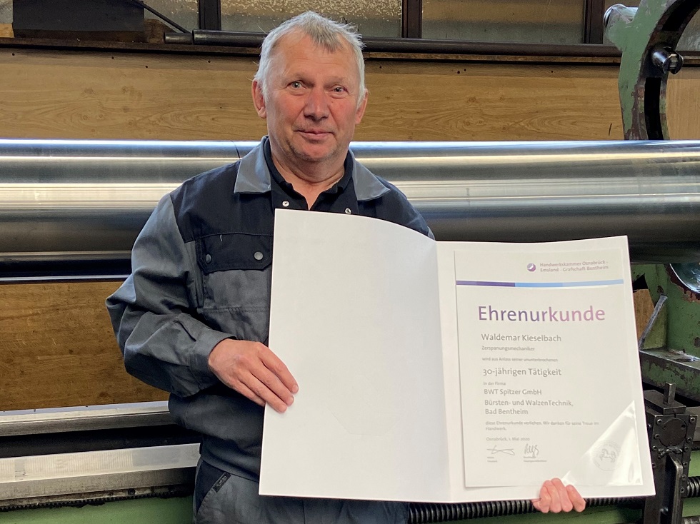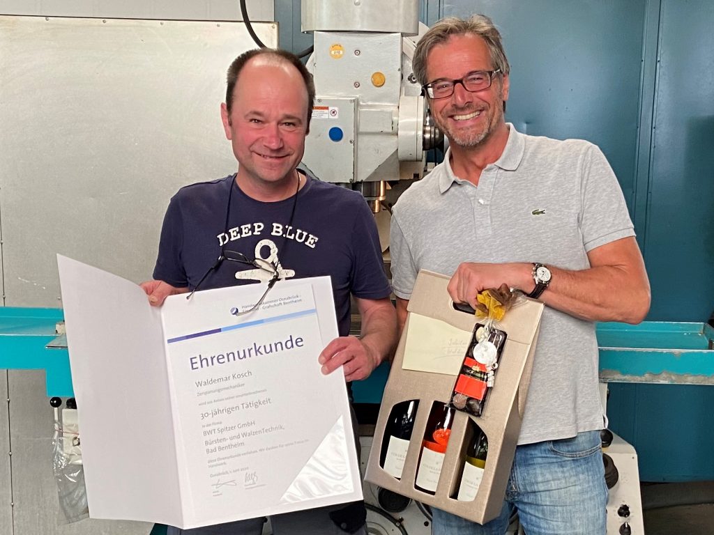 In den letzten Monaten häuften sich die kleinen Feierlichkeiten in dem traditionsreichen, familiengeführten Unternehmen. Peter Spitzer ehrte 10 Jubilare, die seit mehr als 20 Jahren für das Unternehmen arbeiten.