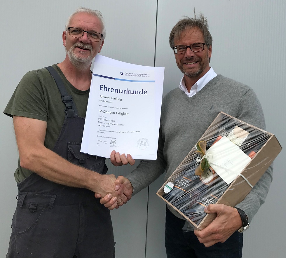 Alle Jubilare erhielten eine Ehrenurkunde der IHK-Osnabrück. Als Zeichen der Anerkennung und des Dankes konnten sie sich zudem über eine Treueprämie sowie einen Geschenkkorb freuen.
