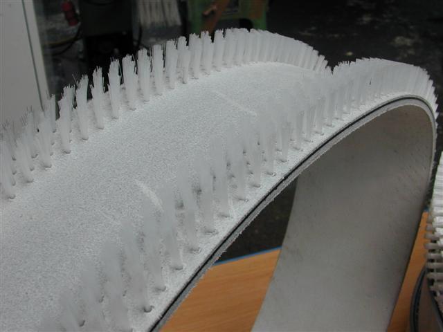 Sie können mit weichen bis harten Kunst- oder Naturborsten bestückt werden und lassen sich für empfindliche Oberflächen oder als widerstandsfähige Bürste einsetzen. Im Horizontal-, Vertikal- oder Schräglagenbetrieb eignen sich Riemenbürsten zum Transport von Werkstücken oder zum Reinigen von Objekten oder Bändern im Durchlaufverfahren.