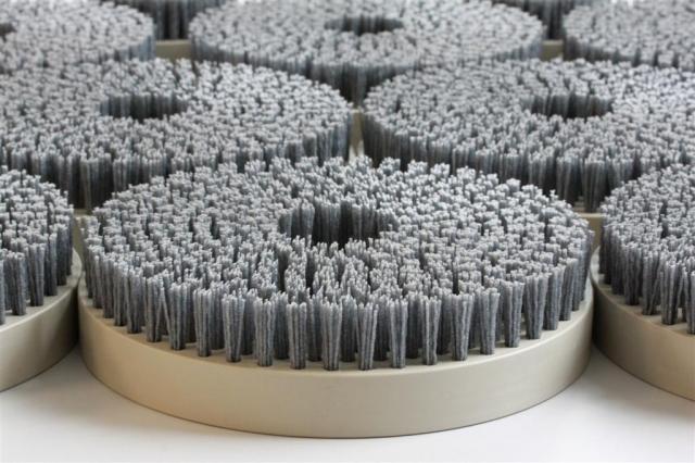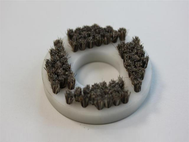 Das Besatzmaterial wird entweder maschinell gestanzt oder von Hand eingezogen. Befestigungslöcher, Schaft oder Gewinde werden entsprechend der Vorgabe gefertigt. Besatzdichte und Besatzanordnung (Vollbesatz, Felderbesatz) sind abhängig vom Verwendungszweck.